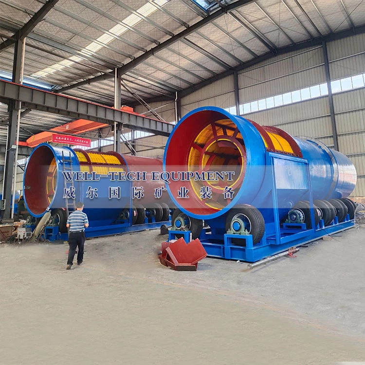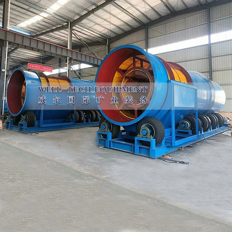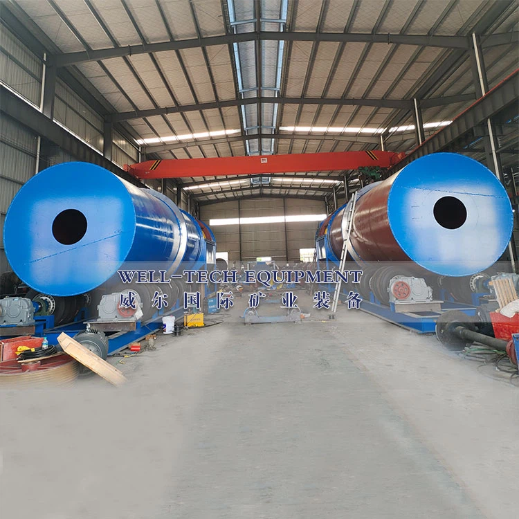 Mazgāšanas kaolīna keramikas māla lieljaudas rotējošais skruberis no Ķīnas, 500 tph lieljaudas rotējošais skruberis, trumuļa diametrs 3,2 m, skrubera garums 7,5 m, lāpstiņas garums 2,5 m.